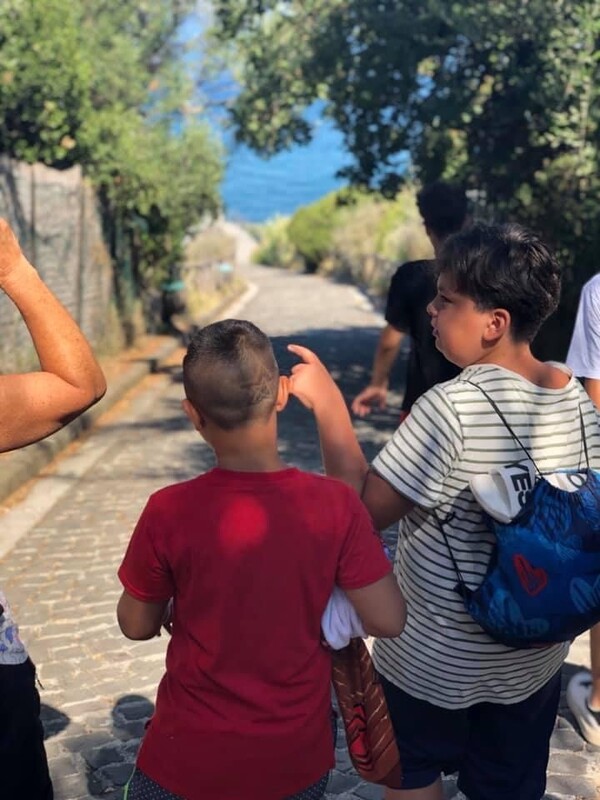 L’attività riguarda un soggiorno residenziale, svolto sull’isola di Procida dal 22 al 26 luglio 2019, e prevede un’esperienza di gruppo con forte valenza educativa, in quanto i minori affrontano lontano dal proprio quartiere e dalle proprie famiglie, in un contesto non conosciuto e usuale, diverse esperienze quali: l’autonomia, la condivisione dei tempi e dei luoghi, la cooperazione. L’attività è rivolta a un gruppo misto di minori di età compresa fra i 9 ed i 16 anni, iscritti al LET e partecipanti assidui, per i quali è in corso un progetto educativo individuale e/o di gruppo. Il coinvolgimento di minori di età diverse permette di stimolare l’alleanza e la cooperazione tra pari nelle diverse fasce di età (adolescenti, preadolescenti e bambini). La finalità del soggiorno è l’accompagnamento dei minori alla scoperta della storia, della natura, delle tradizioni dell’isola. Difatti, si è promossa la conoscenza delle modalità con cui visitare un nuovo luogo al fine di ampliare il proprio bagaglio di conoscenze. I minori partecipano attivamente, con gli educatori, alla co-costruzione delle attività che li vede protagonisti. Nel concreto, sono realizzate giornate con l’attività di balneazione al mattino e visite guidate presso luoghi significativi (Terra Murata, Vivara, Basilica di San Michele, il Faro) associate a un momento elaborativo laboratoriale durante le ore pomeridiane e serali. La metodologia adoperata durante il soggiorno è quella del fare. Durante i momenti comuni, i minori organizzati in gruppi misti, con il supporto di tutta l’equipe e del coordinatore, sistemano gli spazi, organizzano i pasti principali (stilando la lista della spesa, andando a fare la spesa, preparando i pasti). La scelta di Procida è motivata dal fatto che l’isola è un luogo che favorisce gli spostamenti a piedi, stimolando lo spirito del viaggiatore e l’autonomia. Inoltre, il camping “La caravella” è collocato in una posizione strategica e centrale dell’isola, vicino a diverse spiagge, ed è organizzato in bungalow di legno e roulotte collocate intorno ad un’area comune. In quest’area si sono svolte tutte le attività comuni, con un forte un senso di circolarità e condivisione.