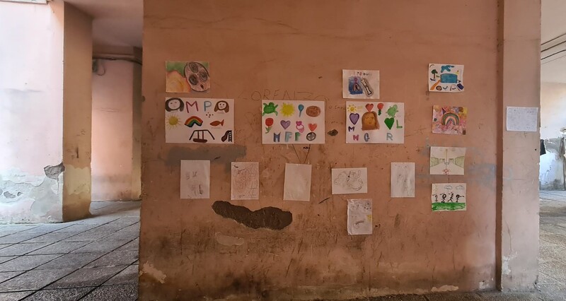 All’interno delle attività educative dedicate al territorio è stato proposto ad un gruppo di bambini di partecipare ad un laboratorio grafico da concludersi con una mostra dei loro prodotti artistici. L’attività, che si è rivolta ai più piccoli che al pomeriggio abitavano il quartiere, ha una valenza educativa oltre che preventiva. Via Luigi Crisconio detta “San Rocco” è una lunga strada costellata di abitazioni popolari, un territorio in cui gli operatori hanno incontrato bullismo, volgarità e aggressività relazionale. Si tratta di un quartiere molto chiuso, che teme il cambiamento e che ha difficoltà ad aprirsi al nuovo. Più che il risultato finale del laboratorio, la valenza dell’attività sta nel provare a portare il modello educativo nel quartiere. Proporre una modalità alternativa dello stare insieme, mostrare la possibilità di cooperare per raggiungere un obiettivo, far sperimentare la capacità di rispettare un appuntamento, promuovere il protagonismo dei più piccoli, rinforzare i successi che arrivano dopo l’impegno e dare visibilità ai ragazzi nel loro ambiente, sono gli effetti indiretti e nascosti dietro la richiesta di provare a disegnare insieme e di farlo nel loro ambiente, sul muretto o negli spazi della Chiesa di San Rocco. Gli educatori, incaricati delle attività sul territorio, hanno raggiunto il gruppo con regolarità una volta alla settimana in orario pomeridiano, portando ogni volta l’occorrente per far disegnare i bambini e proporre loro nuovi lavori da concludere. Svolgere il laboratorio nel loro quartiere è servito per mostrare come vivere il territorio differentemente: per questo la scelta di allestire la mostra dei loro prodotti in una delle cortine del rione, dopo aver ottenuto il consenso del vicinato. Nonostante la diffidenza degli abitanti, per l’attenzione che un evento simile attira, gli educatori sono riusciti ad appoggiare i disegni dei ragazzi alle mura dei palazzi, dando colore e armonia al degrado del luogo, altrettanto evidente: la mostra doveva essere non solo facile da allestire ma anche da smantellare, per la preoccupazione di alcuni che tutto potesse tornare come prima. Il giorno della mostra, i bambini diventano i protagonisti che accompagnano i visitatori alla scoperta delle loro opere. L’intero vicinato ha partecipato con grande entusiasmo.